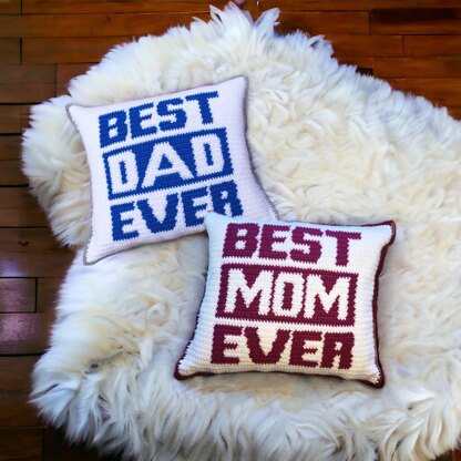 Give a gift to someone special handmade by you. A perfect crochet pillow for a mom and dad, letting them know that they are the BEST EVER!