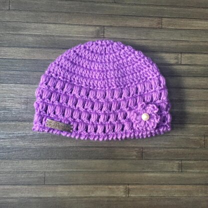 BETH CROCHET BABY & KIDS HAT CROCHET PATTERN PDF - A pretty puff stitch hat in 9 sizes from Prem to 8-10 Years. Made in the round from top down so no sewing of side seams.