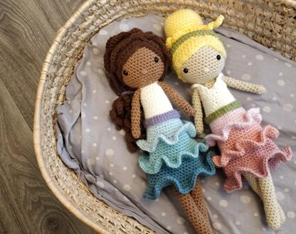 These Dolls have a total length of about 41-42 cm (using Aran weight yarn) Included patterns: - Bianca - Luna Play around with different colors, hair and dress styles to create your unique doll. The pattern is written in English (US) using US terminology.