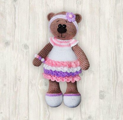 Crochet Bear Pattern, Bianca Bear Crochet Patterm, Crochet Bear Girl Pattern, Amigurumi Bear Pattern, Bear in Dress Crochet Pattern, PDF