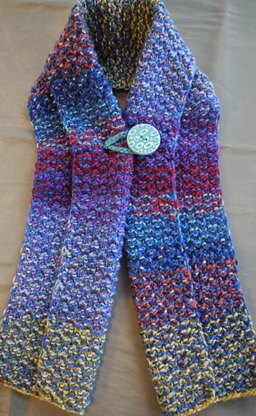 The color effect in the neck warmer is achieved by working three different colors of Gerbera, one solid and two prints, in a one row striping pattern. Only one color is used at a time and there is no carrying colors across the row. The pattern includes complete instructions. Create you own rainbow effect using your favorite colors!
