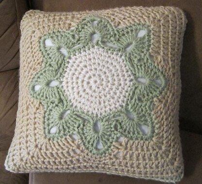 Quick and easy granny-square works up as a 12" afghan block in worsted/aran weight yarn or make it an 18" pillow top with Bulky yarn and an M/N hook.