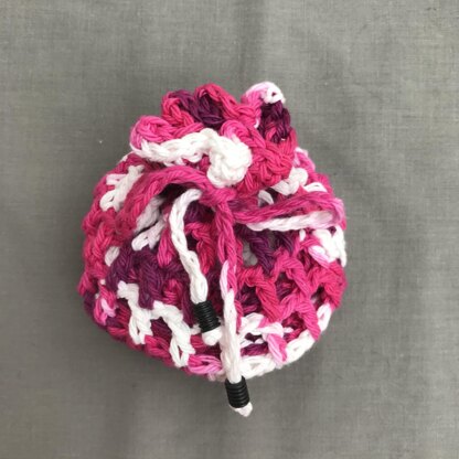 My obsession to make projects all in one piece continues. The scrubby portion of this project is indeed made in one piece, with the laundry bag being made separately.