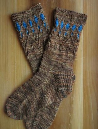 Motif uses twisted stitches (video tutorial links provided) and stranded color work.