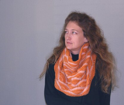 Its a loose fitting, drape-y cowl that will billow around your neck (thank-you to Celticflame99 who helps me name my designs!). It can be made in any two colors of aran weight yarn. The cowl is made from the neck edge down and gets gently wider as you knit.