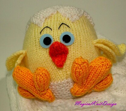 This is Billy the chick, knitted flat with straight Knitting needles, easy to follow pattern, with row by row written instructions and photo-tutorial.