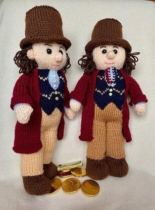 Suggested colours & materials for one doll colour coded. Using DK/8ply yarn
