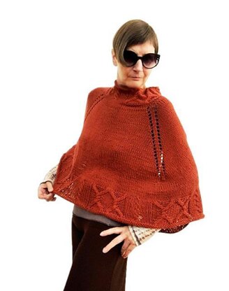 Binault, a stunning poncho to knit and wear. It’s worked from the top down and all in one piece. Starting off is a cabled mini cowl or a very loose fitting turtle neck, if you want to call it that. The raglan increases grow the poncho in size and a plain knitting block grows it in length. The final touch is the cabled border.