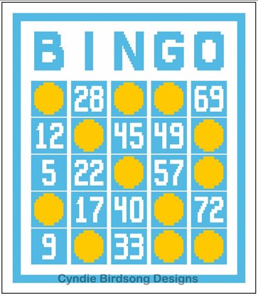 If using weight #4 yarn and a 5.5mm hook, this finished throw will take approximately 1400-1500 yards of the 1st color (A rows = border, squares, and BINGO), 1200-1400 yards of the 2nd color (B rows = background and numbers), and 375-400 yards of the 3rd color (circles). This will also depend on your stitch tension & gauge