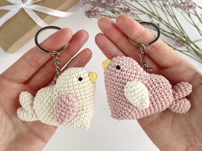 Bird crochet pattern keychain Amigurumi heart keyring Bag charm Car mirror hanging decor