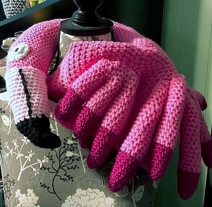 Ahh, the graceful flamingo. Who wouldn't want one to keep their head and ears warm? There are even log legs to tie under your chin in case it's windy outside. FUN!