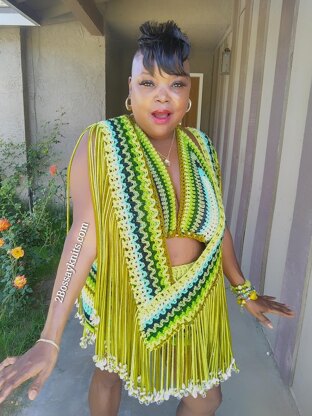 The cover up is made up of simple crochet stitches for the body, which creates a mesh type effect throughout. Fringe, beads, & seashells are added to get you in the "festival mood". Pair it with a bikini and heels for a dressed up effect, or a pair of sandals and the Birthday Behavior Shorts for a laid back look. However you wear or style it will definitely make it the OOTD!