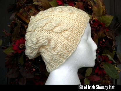 Here's another super fun, super easy, and super fast slouchy hat pattern. This one is a perfect medley of twisted cables and mini bobbles. The best part about this hat, in my opinion, is the top. I love the design that the stitches make at the back. This pattern includes TWO adult sizes because not everyone's head is the same size. I know this because my big ol' noggin never fits in hats and wigs! The smaller size is perfect for pre-teens, teens, and adults with smaller sized heads. The larger size is great for women like me (with big ol' noggins) and men.