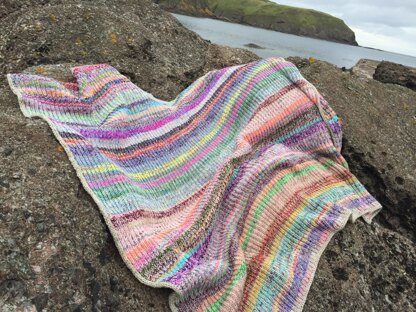 It's a perfect use for all those bits and bobs of precious yarn, and is designed to use up every last scrap of your leftovers. You hold the yarn double throughout the blanket, which gives you a beautiful watercolour effect. The I-cord border finishes it off perfectly.