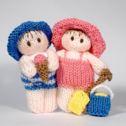 Patterns are given for both Boy and Girl Bitsy Babies and their accessories, they are knitted flat and use basic knitting and shaping stitches.
