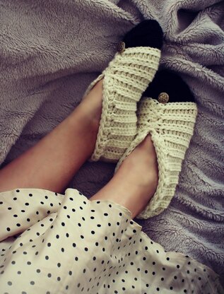 Style, class and comfort...these cute little ribbed knit-look crochet slippers will have your feet feeling pampered! Quick to make for yourself or as a special gift.