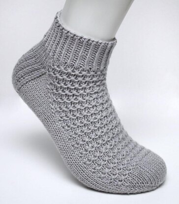 This is a toe up sock pattern, worked in one piece, from the toe up to the cuff. Casting on requires using a two needle cast on method. The toe of the socks is knitted first, before moving onto the foot, the gusset, the heel, then the leg and finally finishing on the cuff. A stretchy cast off is used to cast off the stitches of the cuff.