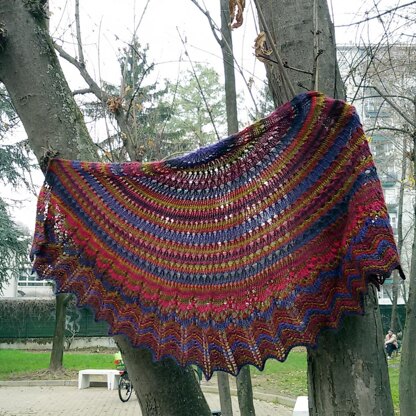 A half-circle shawl which is perfect for multi-coloured yarns.