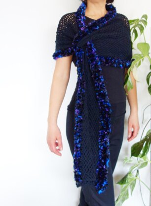 This gorgeous crochet wrap is quick and easy to make, perfect pattern for a beginner. Featuring a luxurious fur like border the wrap surprises and delights for a unique and dramatic look. Flatters any figure, adding a light layer to cover bare shoulders or dress up any dress, camisole or t-shirt. Perfect as a party or wedding coverup is a must have accessory.