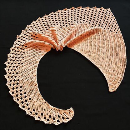 This is an asymmetric shawl featuring a spray of eyelets along one edge of the shawl.