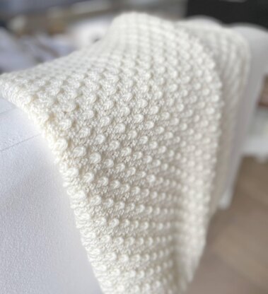 This is the perfect baby blanket! If made with wool yarn it is very warm.