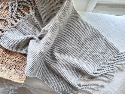 A beginner friendly crochet blanket pattern big on style and elegance. The coastal throw with twisted fringe has an easy yet elevated feel. This is crochet that looks knit.