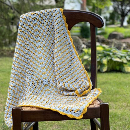 There are so many things to love about this baby blanket – its unique design, its elegant look, its lightweight drape – to name a few. Made with a DK weight yarn, in this case Paintbox Yarns “Simply DK”, the blanket can be used in any season. And, the 100% acrylic yarn means it’s durable and easy to care for.