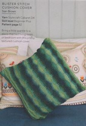 This is a pattern for a blister sticth cushion cover, originally published in Knitting magazine. It has a stocking stitchback, blister stitch front and moss stitch edges. Photos Knitting magazine.