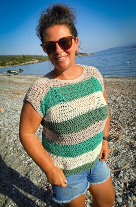 The Block Party Tee pattern is a beginner friendly pattern. It's made up using a 5.5m hook, cotton yarn and is written in UK terms.