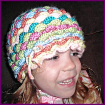 Bloom is a slightly loose fitting hat with a tie string that tightens it to fit. It creates an adorable flower bloom look. Make it from all one color, or change colors for each row of petals.