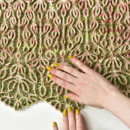 This pattern is designed to introduce fans of two color brioche knitting to new and interesting configurations of the stitch. The stitch pattern in the shawl reminds me of a flower, growing from a seed into a full bloom. There are three stages of the pattern, each containing different floral motifs. A lot of brioche stitch motifs look like plants and flowers, but the increases and decreases that are needed to make these motifs are not always standard. In every stage, there is an introductory video explaining what types of new stitches and techniques are used and there are individual videos of each stitch instruction. In total, there are over 2 hours of video content to help you learn every increase, decrease, and specific technique in the pattern.