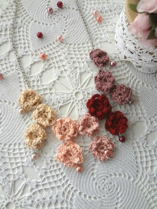 This is a pattern for a delicate, head-turning flower necklace that will make you feel spectacularly beautiful whether you dressed casually or formally.