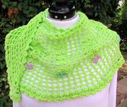 This shawl is not difficult, but I've rated it as intermediate because the instructions change for each row. The pattern calls for chains, single, double and treble crochet, front post double crochet, shells, clusters, and attaching new yarn.