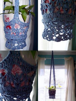 I needed a plant hanger for my indoor plants that was not only strong, but beautiful. After looking online for one that was reasonably priced, I decided to make my own. This hanger features an openwork crochet design for the basket that represents flower blooms ending in a picot “stamen”. The bottom ruffle is a complimentary open lace design. The hangers are designed to be strong enough to hold up a potted plant weighing about 8 lbs. Of course, your hook and décor have to hold just as much weight for it to work. Using the worsted weight cotton yarn will provide a little stretch so that an 8” pot fits tightly into it. When making your planter, be sure to securely tie off and weave in ends to prevent unraveling. You don’t want to lose your plant and pot!
