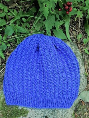 Blooms is a wonderfully textured, easy to knit hat. It suddenly just blooms as you knit it! It is extra scrunchy and warm!