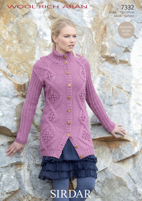Bloomsbury Jacket in Sirdar Wool Rich Aran - 7332 - Downloadable PDF is a Knitting pattern by Sirdar, available as a Downloadable PDF and includes instructions in English. Super fun to make, this pattern could be your next masterpiece!