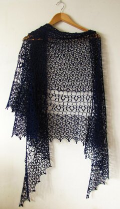 Blue Bird is a triangle-shaped shawl worked tp-down. The beauty of the stitch pattern opens after strong blocking. Skill level is intermediate.
