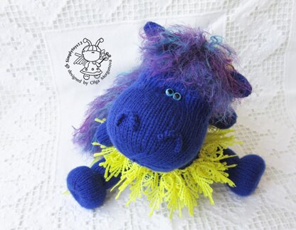 Materials needed • 4 double-pointed needles in a size suitable for the yarn weight you are using. I recommend using needles a size or two smaller than the yarn calls for, to produce a firm fabric. İ used Needles size 2 (3mm) • Blue yarn for hippo (Kartopu «Flora» (100% acrylic 100g - 230m) • Melange blue-turquoise Yarn Tecno by YarnArt DK / 8 ply 100% Microfiber 100 meters / 50 grams for hair • Lilac yarn for mouth, eyebrows • Toy stuffing • Plastic eyes • Yarn needle • Stitch holder • 1 meter yellow lace for the skirt • 2 meters of satin yellow ribbon