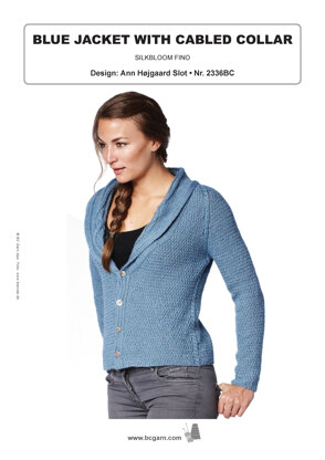 Blue Jacket with Cabled Collar in BC Garn Silkbloom Fino - 2336BC - Downloadable PDF is a free Intermediate Knitting pattern by Ann Højgaard Slot, available as a Downloadable PDF and includes instructions in English. Super fun to make, this pattern could be your next masterpiece!