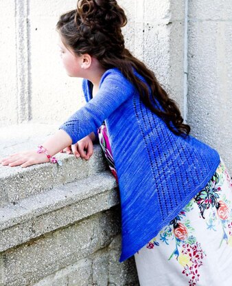 Blue Macaw is a delightful, light weight, lacy, open, and very stylish cardigan. It features V-lace lace that radiates across the back and fronts; the lace rays it creates is very reminiscent of the birds feathers during the flight, thus the name. Let this cardigan enchant you with its simple lace and flowing lines. Let your imagination fly as you see the design unfold.