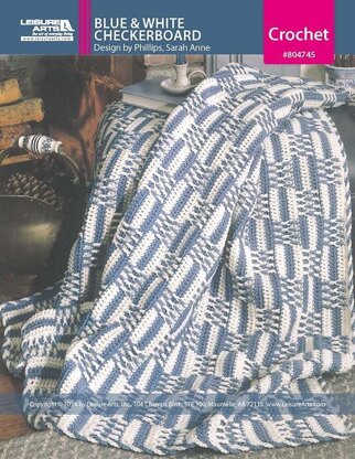 Leisure Arts Contest Favorites Blue & White Checkerboard Afghan Crochet ePattern- A beautiful afghan design selected from almost 100 entries in the Red Heart Afghan Design Contest sponsored by Leisure Arts’ Crochet With Heart magazine. This second place entry features panels of alternating stripes with overlapping front post double crochet stitches. Project can be made using size 4 worsted weight yarn and a US size H-8, 5mm, crochet hook. Includes row-by-row design instructions and illustrated crochet stitch diagrams. Finished afghan measures approximately 45"x 61". Originally published in Leisure Arts Leaflet 3067, Contest Favorites 40 Afghans to Crochet. 7 pages, PDF download.