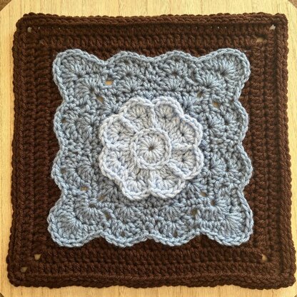The square uses basic stitches. A few rounds use the "third loop" technique to achieve a nice 3-D effect.