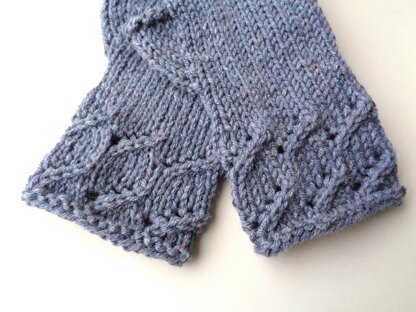 Chic gloves with a pretty cuff, worked in an eco-friendly, recycled yarn. Worked in the round with a thumb gusset.