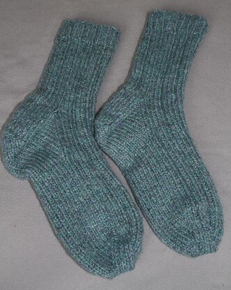 Bluestone is a written pattern including a measurement chart. These are aran weight adult socks sized from a small women's to an extra large men's size. Also included is a chart illustrating the parts of a sock for reference.