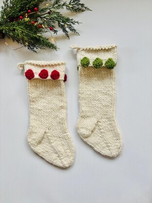 The Bobble Christmas Stocking is easy and quick to knit using super chunky yarn. The bobble "ornaments" add a festive look to this simple stocking. Knit from the top down on circular needles, the only time you'll be knitting on DPNs is for the toe! If you've never knit socks before then knitting this stocking would be a great way to learn the basic sock knitting techniques!