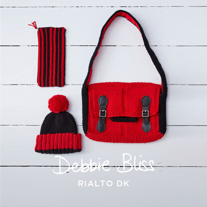 Download the PDF pattern for Bobby Satchel, Pencil Case & Hat - Knitting Pattern for Kids in Debbie Bliss Rialto DK - Downloadable PDF & start knitting today!