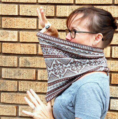 Instructions are given to work a shorter cowl around the neck or a longer tube-like cowl. Stitches are cast-on and joined to work in the round from the bottom-up (or top down, depending on how you look at it). The shorter cowl is worked with ribbed edging and the longer cowl is worked, then edges are sewn together creating a long tube. (with given yarn amounts - you may work 2 shorter cowls, reversing colours, or 1 long cowl)