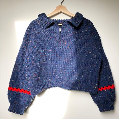 Playing on the quarter zip sweater trend, introducing the Bodwin Pullover! This is unisex pattern written with 7 sizes (XS to 3XL) in mind. The pattern has a slight oversized fit. The zipper gives a unique touch to the piece!