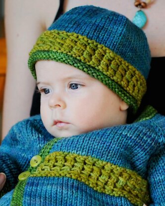This pattern includes two hats that are designed to coordinate with my Seamless Wrap Sweater patterns for babies and children. The TEXTURED BEANIE pattern is a classic style that has been updated with the addition of a rolled brim and sophisticated textured band. PIXIE POINTS is deceptively simple! This adorable hat looks looks like a square when laying flat, but when worn the corners form "kitten ears". Embellish the points with tassels or pom-poms for even more fun!