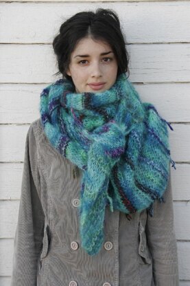 This garter stitch shawl will brighten up any day! It is easy to knit and the stripes are finished with overhand knots. Perfect for those of you who hate finishing!! Happy knitting!